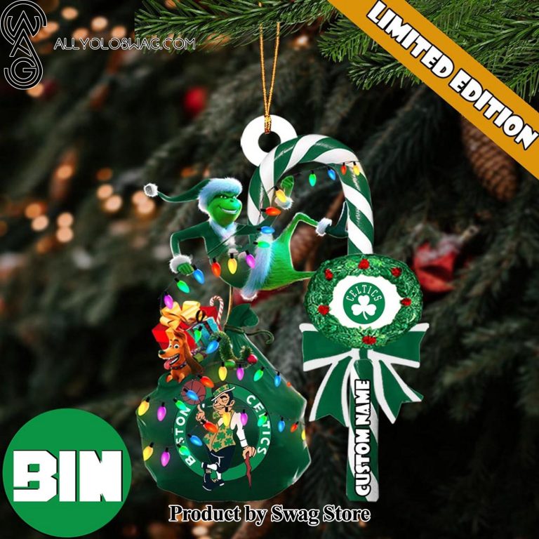 NOTE: [Top-selling] Boston Celtics NBA Custom Name Grinch Candy Cane Christmas Tree Ornament