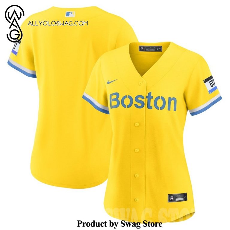 Some details about our product [Top-selling] Boston Red Sox City Connect 3D Unisex Jersey – Gold Light Blue