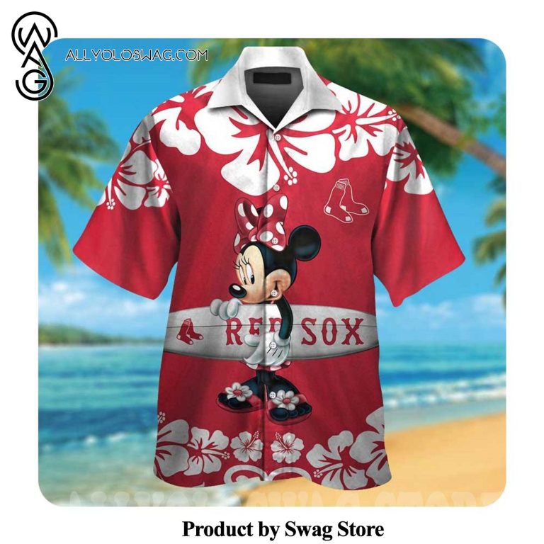[Top-selling] Boston Red Sox Minnie Mouse Cool Style Hawaiian Shirt was hand-tailored in the early days of fashion. This might happen in the comfort of one’s own home or at a custom tailor’s business. These stores immediately sprang up all across the islands, especially in plantation towns and Honolulu. Newly accessible fabrics from throughout the world were sold at dry goods stores, including printed silk from Japan, raw silk, batik, and rayon from the United States mainland, and cotton cloth for kimonos and yukatas.Hawaiian history had long been shaped by Asian immigrants, and apparel designs reflected this. Short- and long-sleeved shirts, as well as women’s skirts, were created using pre-printed textiles from China and Japan and were based on Asian clothing styles. These bright blouses and dresses were the forerunners of today’s Aloha attire. On the islands, we say “ono” to describe something that is pleasantly cool.