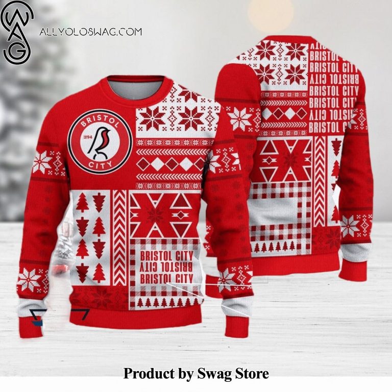 NOTE: [Top-selling] Bristol City Surf Efl Logo Team Ugly Christmas Sweater For Fans Gift Unisex Sweatshirt