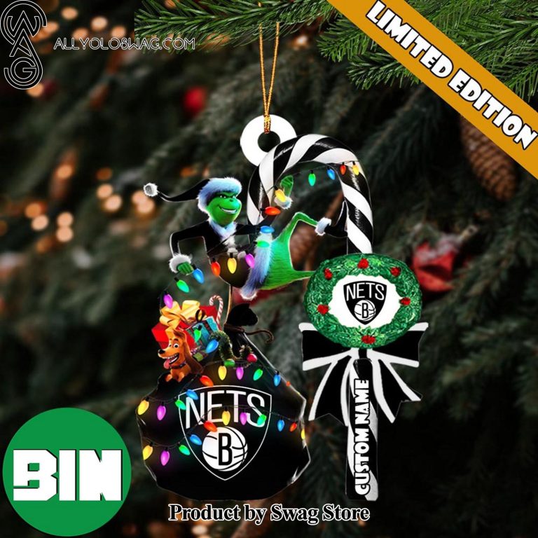 [Top-selling] Brooklyn Nets NBA Custom Name Grinch Candy Cane Christmas Tree Ornament