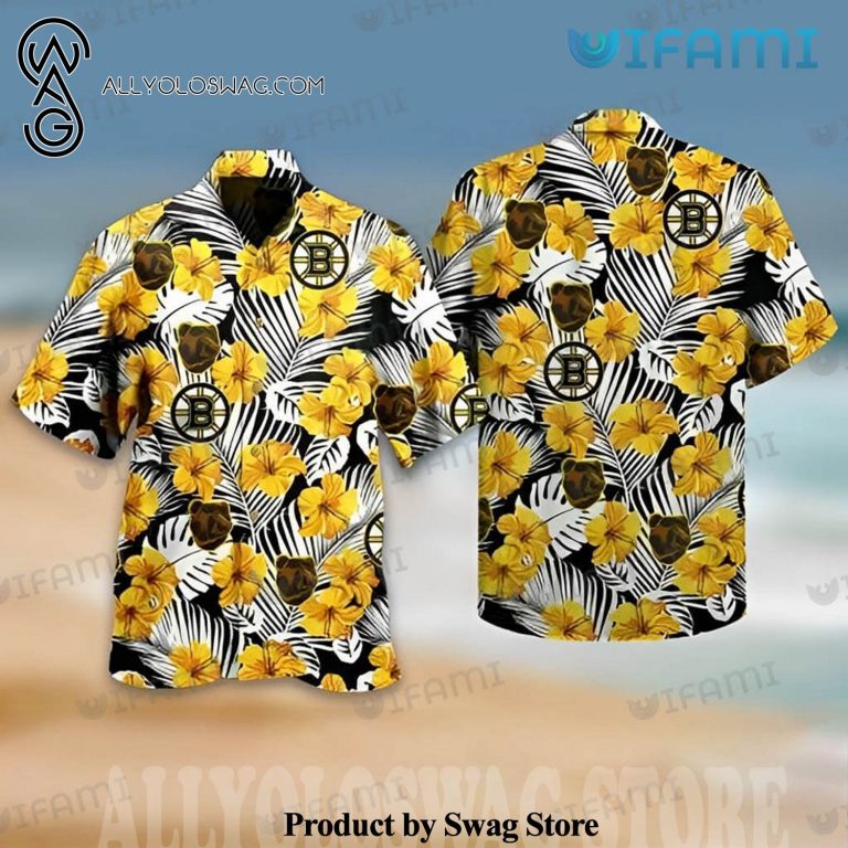 [Top-selling] Bruins Gold Hibiscus Palm Leaf Boston Bruins Gift Hawaiian Shirt was hand-tailored in the early days of fashion. This might happen in the comfort of one’s own home or at a custom tailor’s business. These stores immediately sprang up all across the islands, especially in plantation towns and Honolulu. Newly accessible fabrics from throughout the world were sold at dry goods stores, including printed silk from Japan, raw silk, batik, and rayon from the United States mainland, and cotton cloth for kimonos and yukatas.Hawaiian history had long been shaped by Asian immigrants, and apparel designs reflected this. Short- and long-sleeved shirts, as well as women’s skirts, were created using pre-printed textiles from China and Japan and were based on Asian clothing styles. These bright blouses and dresses were the forerunners of today’s Aloha attire. On the islands, we say “ono” to describe something that is pleasantly cool.