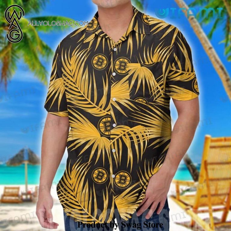 [Top-selling] Bruins Gold Palm Leaves Pattern Boston Bruins Gift Hawaiian Shirt was hand-tailored in the early days of fashion. This might happen in the comfort of one’s own home or at a custom tailor’s business. These stores immediately sprang up all across the islands, especially in plantation towns and Honolulu. Newly accessible fabrics from throughout the world were sold at dry goods stores, including printed silk from Japan, raw silk, batik, and rayon from the United States mainland, and cotton cloth for kimonos and yukatas.Hawaiian history had long been shaped by Asian immigrants, and apparel designs reflected this. Short- and long-sleeved shirts, as well as women’s skirts, were created using pre-printed textiles from China and Japan and were based on Asian clothing styles. These bright blouses and dresses were the forerunners of today’s Aloha attire. On the islands, we say “ono” to describe something that is pleasantly cool.