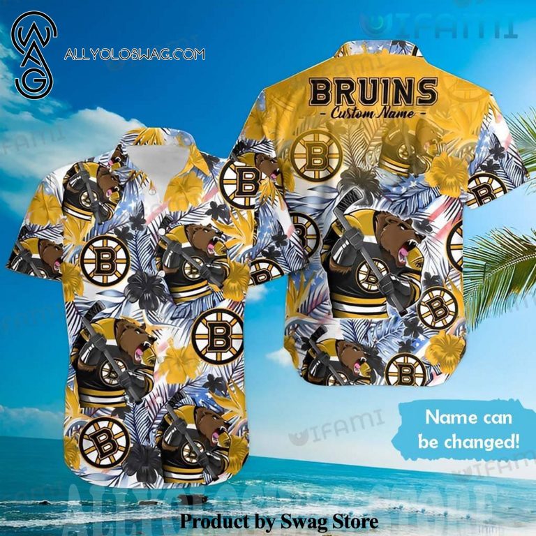 [Top-selling] Bruins Mascot Hockey Flower Palm Leaf Boston Bruins Gift Hawaiian Shirt