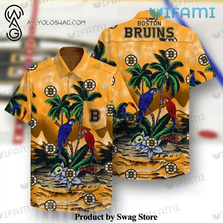 [Top-selling] Bruins Parrots Tropical Leaves Boston Bruins Gift Hawaiian Shirt was hand-tailored in the early days of fashion. This might happen in the comfort of one’s own home or at a custom tailor’s business. These stores immediately sprang up all across the islands, especially in plantation towns and Honolulu. Newly accessible fabrics from throughout the world were sold at dry goods stores, including printed silk from Japan, raw silk, batik, and rayon from the United States mainland, and cotton cloth for kimonos and yukatas.Hawaiian history had long been shaped by Asian immigrants, and apparel designs reflected this. Short- and long-sleeved shirts, as well as women’s skirts, were created using pre-printed textiles from China and Japan and were based on Asian clothing styles. These bright blouses and dresses were the forerunners of today’s Aloha attire. On the islands, we say “ono” to describe something that is pleasantly cool.