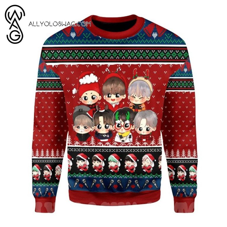 NOTE: [Top-selling] BTS Band Chibi Knitting Pattern Ugly Christmas Sweater