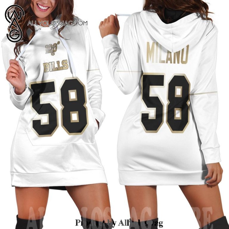 Three Outfit Ideas For A Hoodie Dress [Top-selling] Buffalo Bills Matt Milano 58 NFL White 100th Season Golden Full Print Hoodie Dress