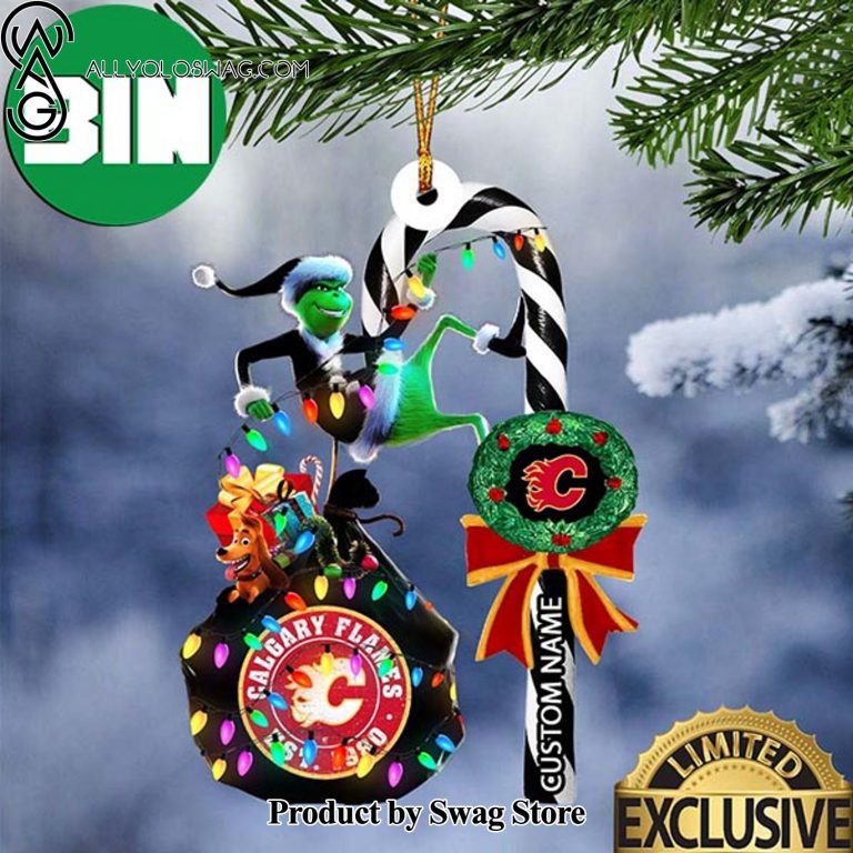 NOTE: [Top-selling] Calgary Flames NHL Grinch Candy Cane Custom Name Christmas Tree Ornament