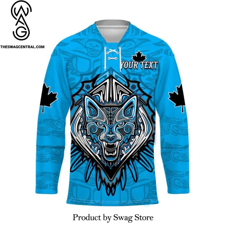 NOTE: [Top-selling] Canada Maple Leaf Blue Haida Wolf Pattern 3D Custom Patch Jersey