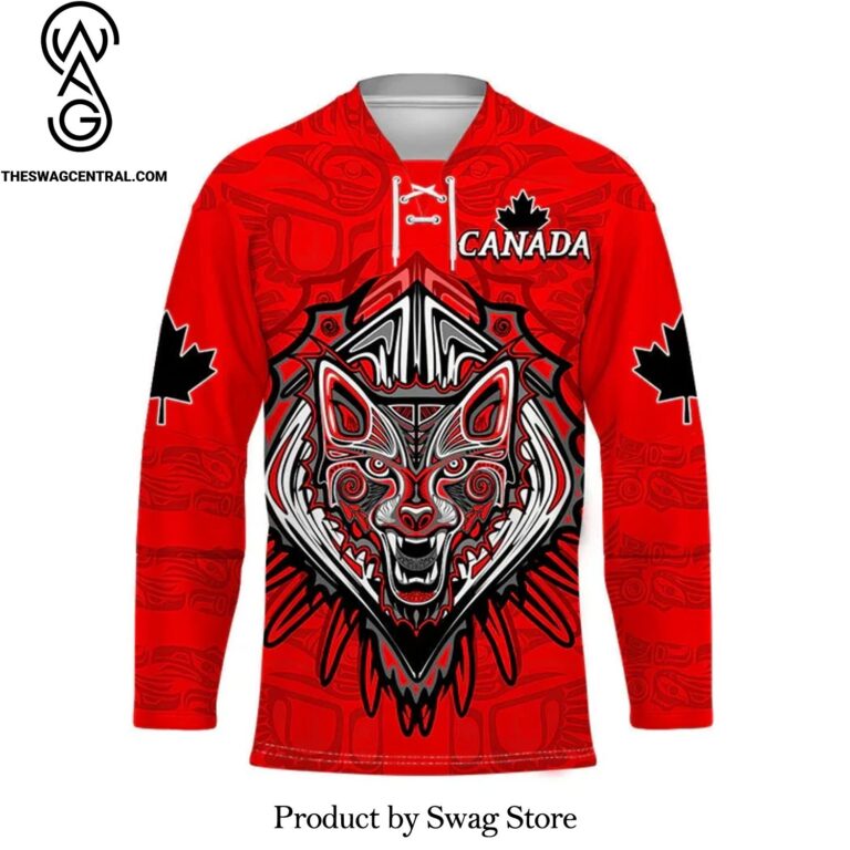 NOTE: [Top-selling] Canada Maple Leaf Red Haida Wolf Full Printed Custom Patch Jersey