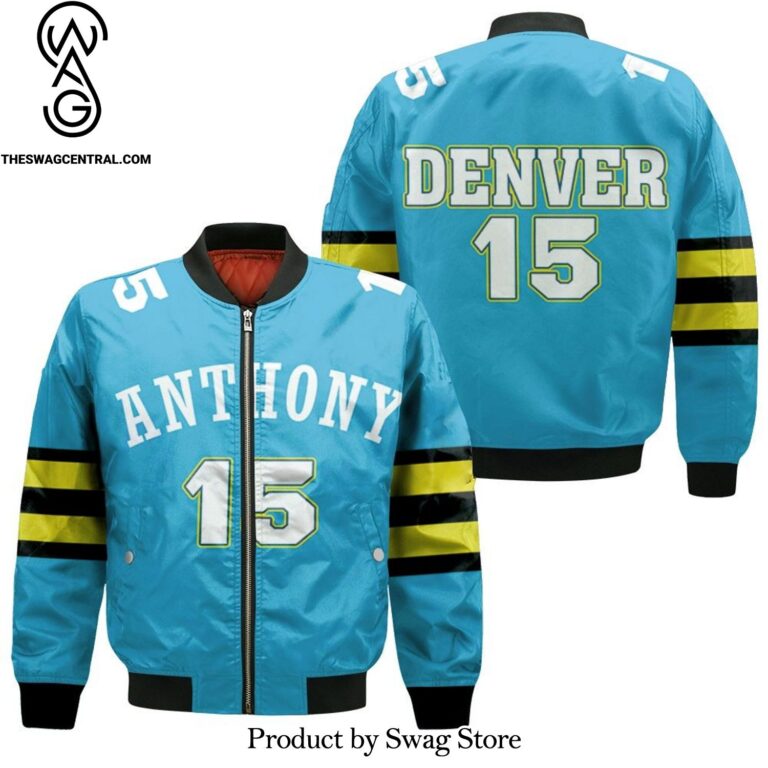 NOTE: [Top-selling] Carmelo Anthony Denver Nuggets 2003-04 Hardwood Classics Light Blue Bomber Jacket Pattern Full Printed Custom Patch Jersey