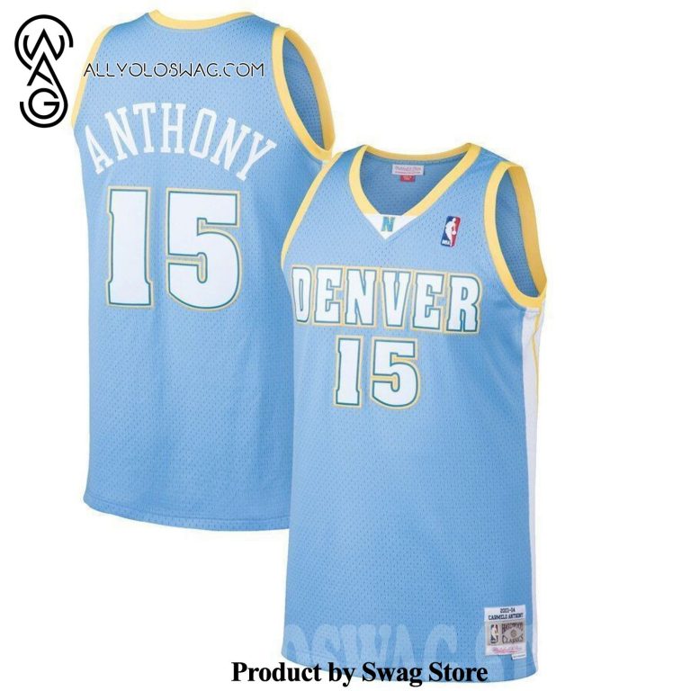 NOTE: [Top-selling] Carmelo Anthony Denver Nuggets Mitchell And Ness 2003-04 Hardwood Classics Swingman 3D Unisex Jersey – Light Blue