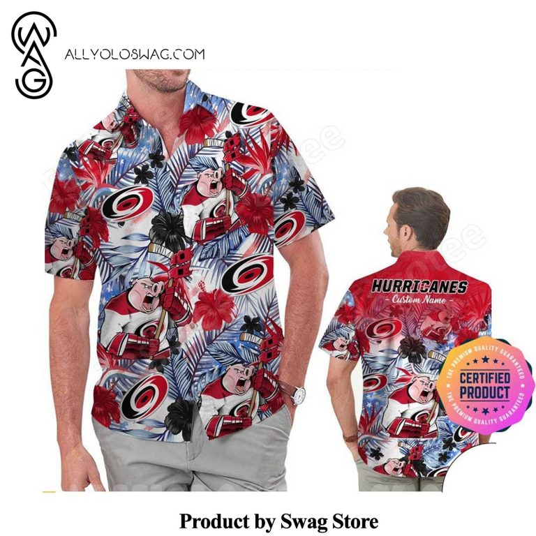 Some details about our product [Top-selling] Carolina Hurricanes America Flag Tropical Floral Aloha Hawaiian Shirt