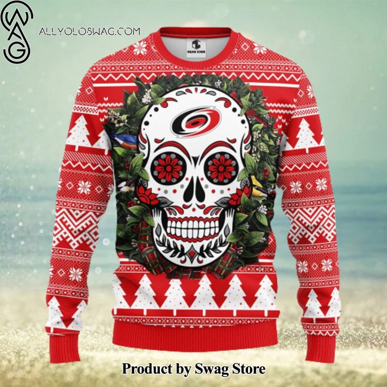 Some details about our [Top-selling] Carolina Hurricanes Skull Flower Ugly Christmas Ugly Sweater