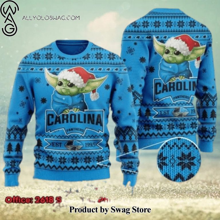 NOTE: [Top-selling] Carolina Panthers Baby Yoda Santa Hat Ugly Christmas Sweater
