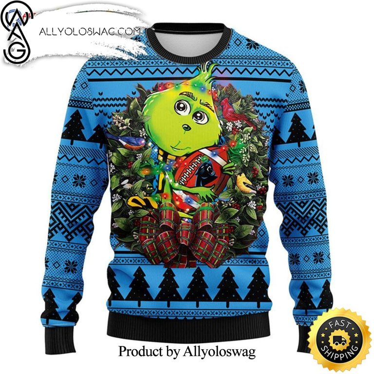 NOTE: [Top-selling] Carolina Panthers Grinch Hug Xmas Day Show Your Team Spirit Knitting Pattern Ugly Christmas Holiday Sweater