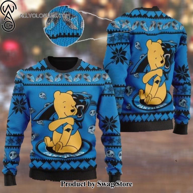 NOTE: [Top-selling] Carolina Panthers NFL American Football Team Logo Cute Winnie The Pooh Bear 3D Ugly Christmas Sweater Shirt For Men And Women On Xmas