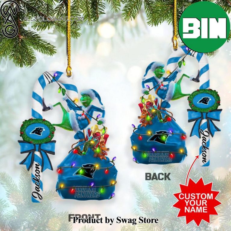 [Top-selling] Carolina Panthers NFL Custom Name x Grinch Two Sides Christmas Tree Ornament Description Information:
