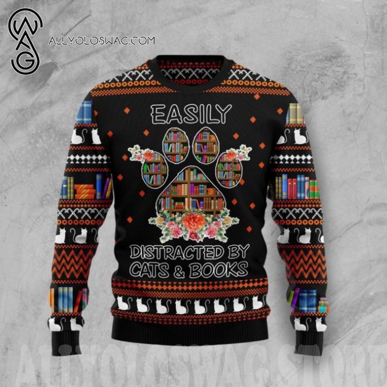 NOTE: [Top-selling] Cat And Books Knitting Pattern Ugly Christmas Sweater