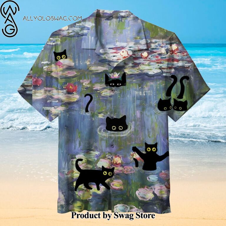 [Top-selling] Cat In Waterlilies Upcycled Hawaiian Shirt description information