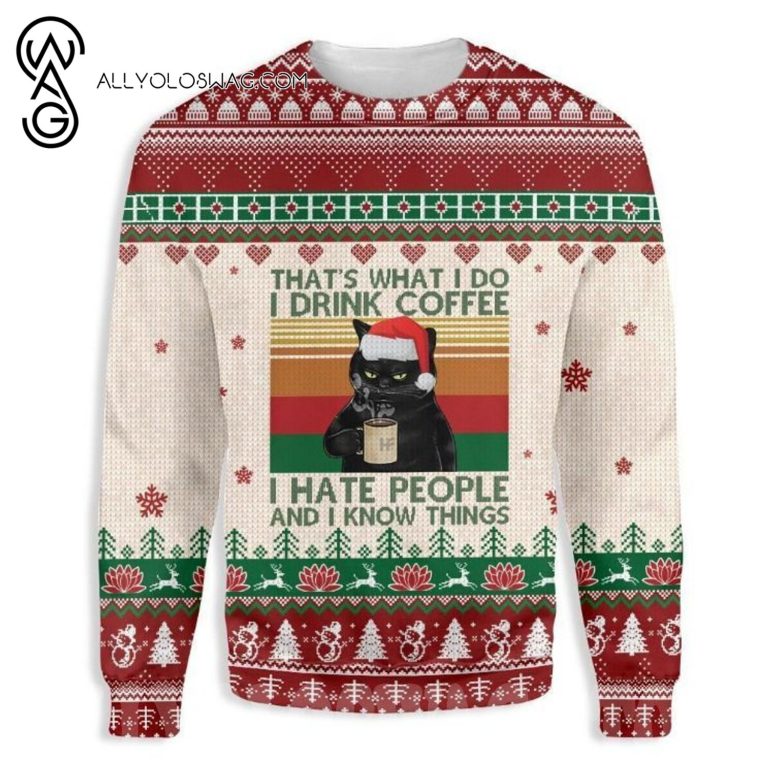 NOTE: [Top-selling] Cat That’s What I Drink Coffee Knitting Pattern Ugly Christmas Sweater