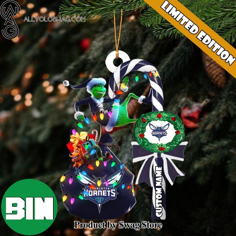 NOTE: [Top-selling] Charlotte Hornets NBA Custom Name Grinch Candy Cane Christmas Tree Ornament