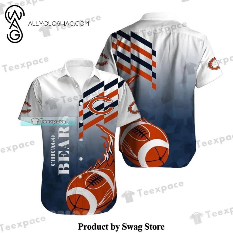 [Top-selling] Chicago Bears Fire Ball Stripes Summer Set Hawaiian Shirt was hand-tailored in the early days of fashion. This might happen in the comfort of one’s own home or at a custom tailor’s business. These stores immediately sprang up all across the islands, especially in plantation towns and Honolulu. Newly accessible fabrics from throughout the world were sold at dry goods stores, including printed silk from Japan, raw silk, batik, and rayon from the United States mainland, and cotton cloth for kimonos and yukatas.Hawaiian history had long been shaped by Asian immigrants, and apparel designs reflected this. Short- and long-sleeved shirts, as well as women’s skirts, were created using pre-printed textiles from China and Japan and were based on Asian clothing styles. These bright blouses and dresses were the forerunners of today’s Aloha attire. On the islands, we say “ono” to describe something that is pleasantly cool.