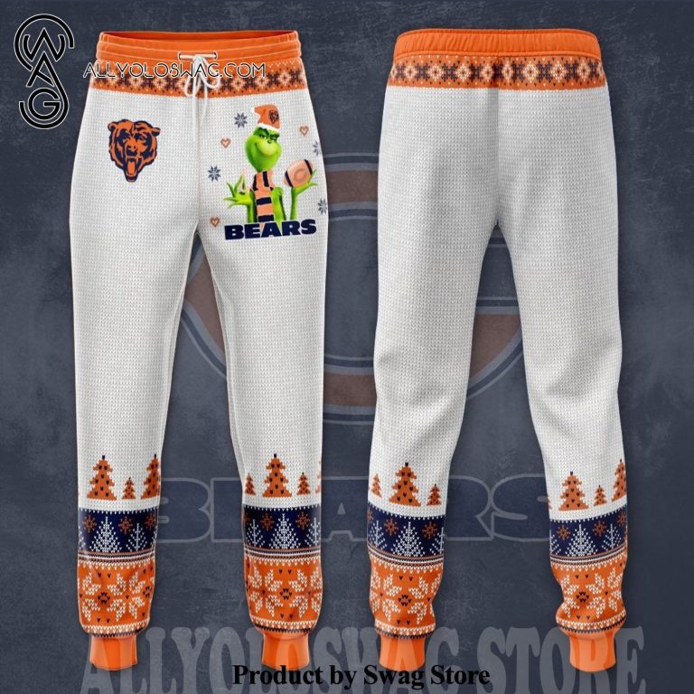 NOTE: [Top-selling] Chicago Bears Grinch Christmas Pattern Full Printing Casual Unisex Sweatpants – White