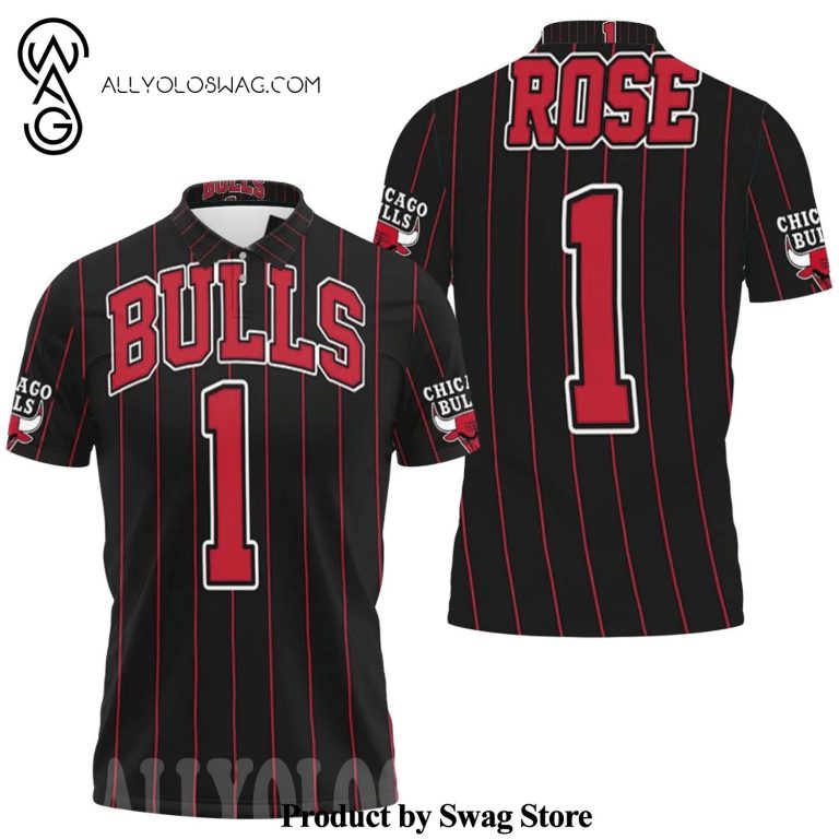 Product description information – [Top-selling] Chicago Bulls Derrick Rose 1 Throwback Red Stripes Black Inspired Full Printed Polo Shirt