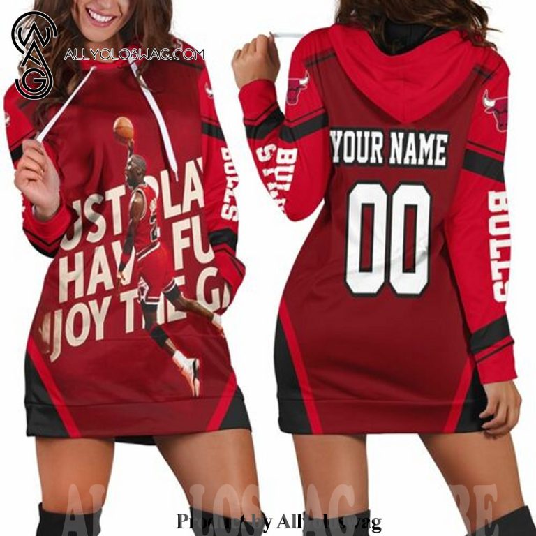 NOTE: [Top-selling] Chicago Bulls Michael Jordan Legend Just Play Have Fun Enjoy Cool Version Full Print Hoodie Dress