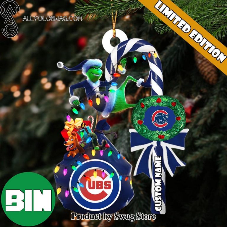 NOTE: [Top-selling] Chicago Cubs MLB Custom Name Grinch Candy Cane Christmas Tree Ornament