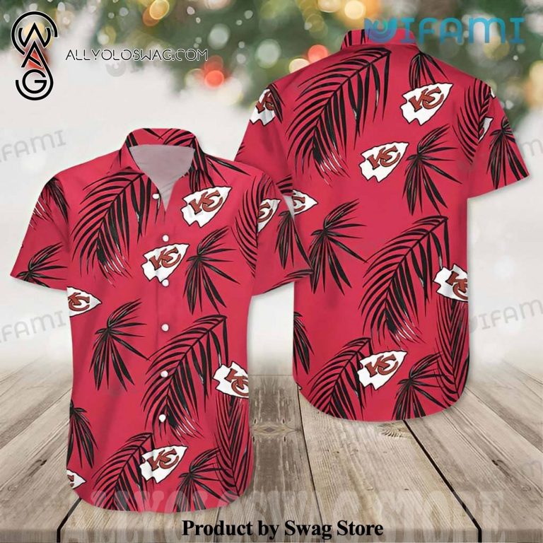 [Top-selling] Chiefs Black Palm Leaves Logo Pattern Kansas City Gift Hawaiian Shirt was hand-tailored in the early days of fashion. This might happen in the comfort of one’s own home or at a custom tailor’s business. These stores immediately sprang up all across the islands, especially in plantation towns and Honolulu. Newly accessible fabrics from throughout the world were sold at dry goods stores, including printed silk from Japan, raw silk, batik, and rayon from the United States mainland, and cotton cloth for kimonos and yukatas.Hawaiian history had long been shaped by Asian immigrants, and apparel designs reflected this. Short- and long-sleeved shirts, as well as women’s skirts, were created using pre-printed textiles from China and Japan and were based on Asian clothing styles. These bright blouses and dresses were the forerunners of today’s Aloha attire. On the islands, we say “ono” to describe something that is pleasantly cool.