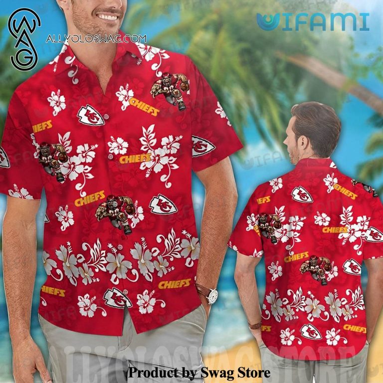 [Top-selling] Chiefs Mascot Hibiscus Pattern Kansas City Gift Hawaiian Shirt was hand-tailored in the early days of fashion. This might happen in the comfort of one’s own home or at a custom tailor’s business. These stores immediately sprang up all across the islands, especially in plantation towns and Honolulu. Newly accessible fabrics from throughout the world were sold at dry goods stores, including printed silk from Japan, raw silk, batik, and rayon from the United States mainland, and cotton cloth for kimonos and yukatas.Hawaiian history had long been shaped by Asian immigrants, and apparel designs reflected this. Short- and long-sleeved shirts, as well as women’s skirts, were created using pre-printed textiles from China and Japan and were based on Asian clothing styles. These bright blouses and dresses were the forerunners of today’s Aloha attire. On the islands, we say “ono” to describe something that is pleasantly cool.