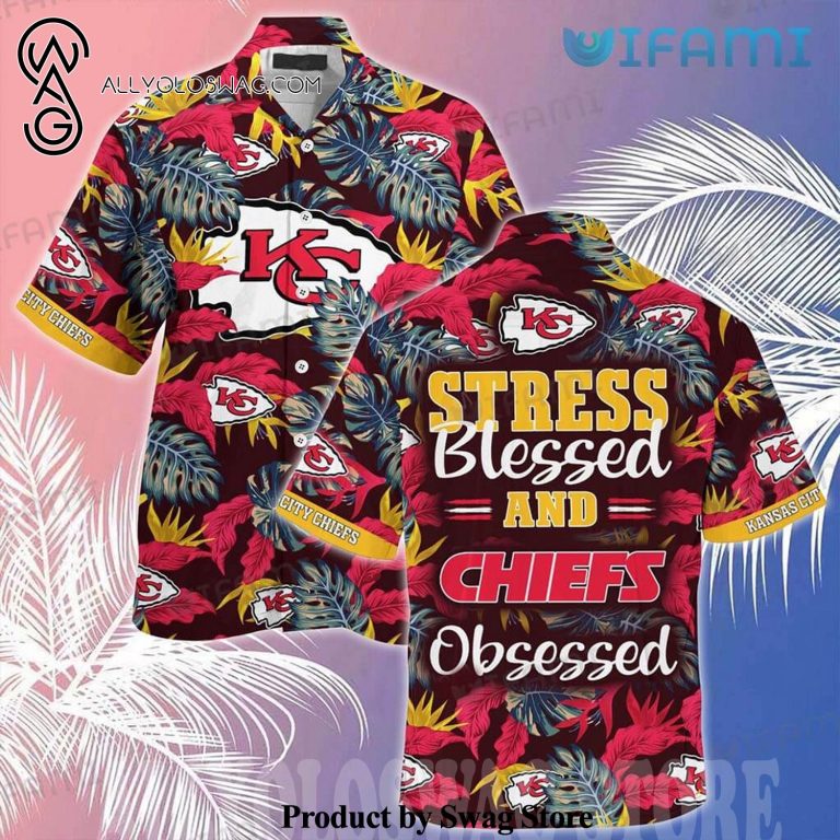 [Top-selling] Chiefs Stress Blessed Obsessed Kansas City Gift Hawaiian Shirt was hand-tailored in the early days of fashion. This might happen in the comfort of one’s own home or at a custom tailor’s business. These stores immediately sprang up all across the islands, especially in plantation towns and Honolulu. Newly accessible fabrics from throughout the world were sold at dry goods stores, including printed silk from Japan, raw silk, batik, and rayon from the United States mainland, and cotton cloth for kimonos and yukatas.Hawaiian history had long been shaped by Asian immigrants, and apparel designs reflected this. Short- and long-sleeved shirts, as well as women’s skirts, were created using pre-printed textiles from China and Japan and were based on Asian clothing styles. These bright blouses and dresses were the forerunners of today’s Aloha attire. On the islands, we say “ono” to describe something that is pleasantly cool.