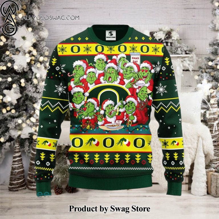 NOTE: [Top-selling] Christmas Gift NCAA Oregon Ducks Cute 12 Grinch Face Xmas Day Men And Women Ugly Christmas Sweater