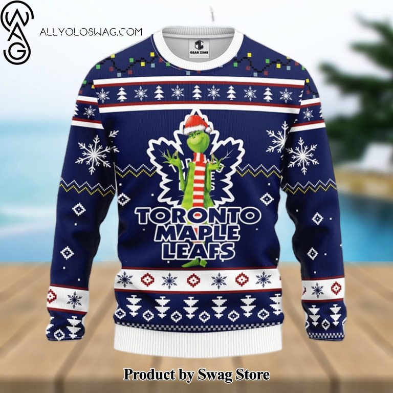 Some details about our [Top-selling] Christmas Gift NHL Toronto Maple Leafs Logo With Funny Grinch Men And Women Ugly Christmas Sweater For Fans