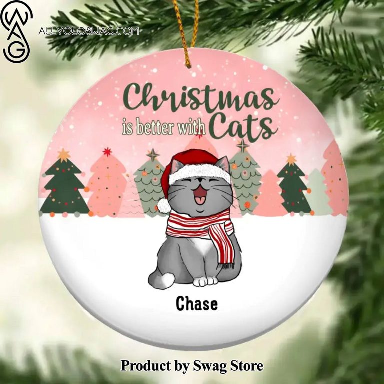 [Top-selling] Christmas Is Better With Cats, Christmas Tree Circle Ceramic, Custom Cat Breeds Ornament Description Information: