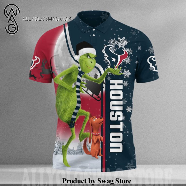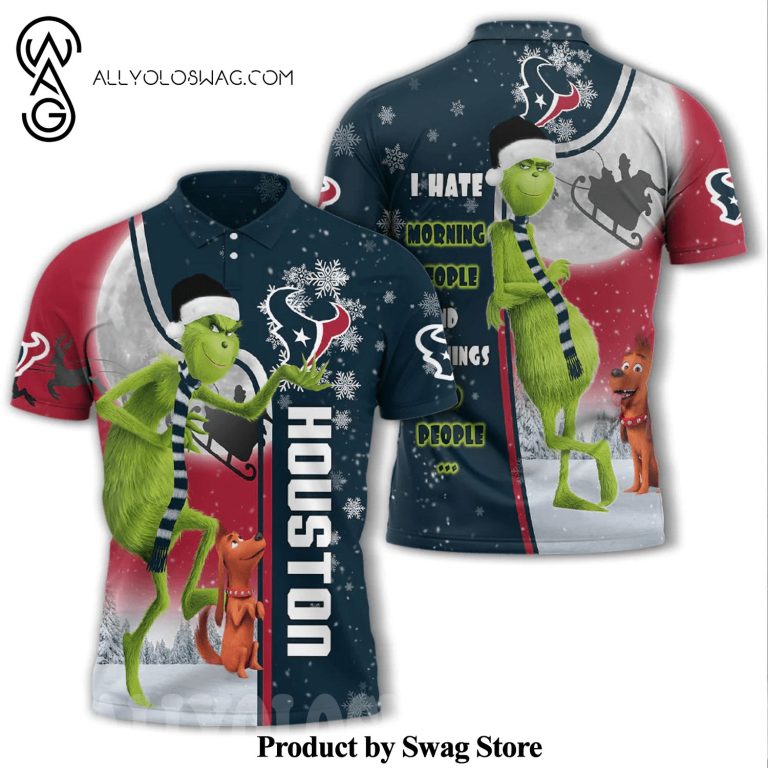 The origins of the [Top-selling] Christmas The Grinch Houston Texans I Hate Morning People Full Printing Polo Shirt can be traced back to the early 20th century when it was primarily worn by polo players. Its design was inspired by the need for a practical yet stylish garment that allowed for ease of movement during the fast-paced game. The polo shirt features a soft collar, a buttoned placket at the neck, and a relaxed fit that allows for comfortable and unrestricted movement.
