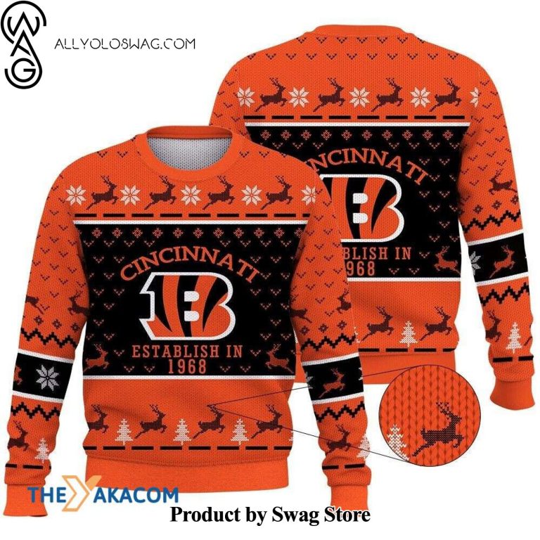 [Top-selling] Cincinnati Bengals Establish In 1968 With Badge Gift For Fan Christmas Ugly Christmas Sweater