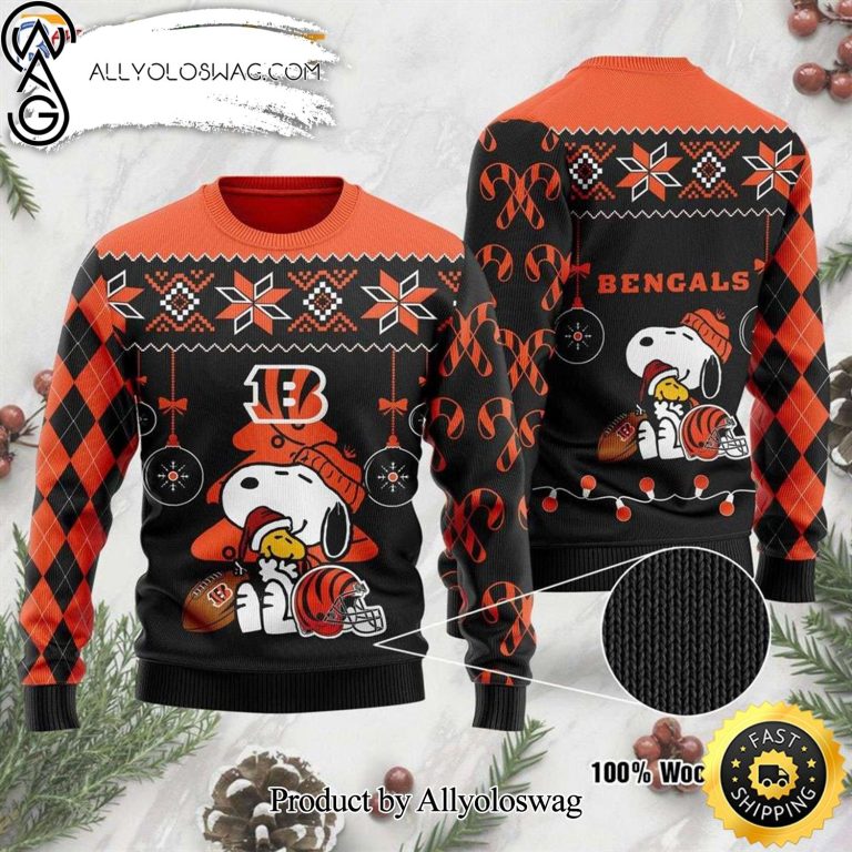NOTE: [Top-selling] Cincinnati Bengals Funny Peanuts Snoopy Woodstock Ugly Christmas Wool Knitted Sweater