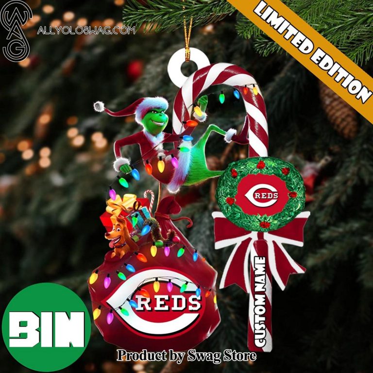 NOTE: [Top-selling] Cincinnati Reds MLB Custom Name Grinch Candy Cane Christmas Tree Ornament