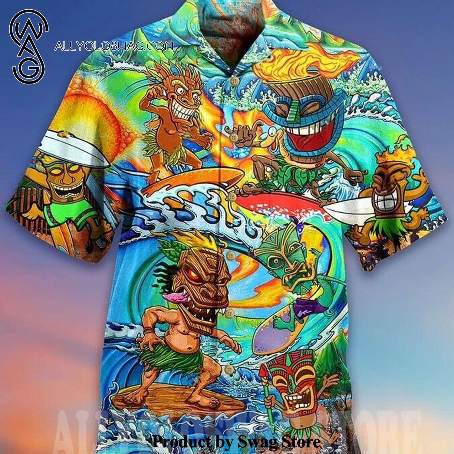 Some details about our product [Top-selling] Classic Aloha Tiki Suring Into The Sunset Beach Button Downs Vintage Summer Full Print Hawaiian Shirt