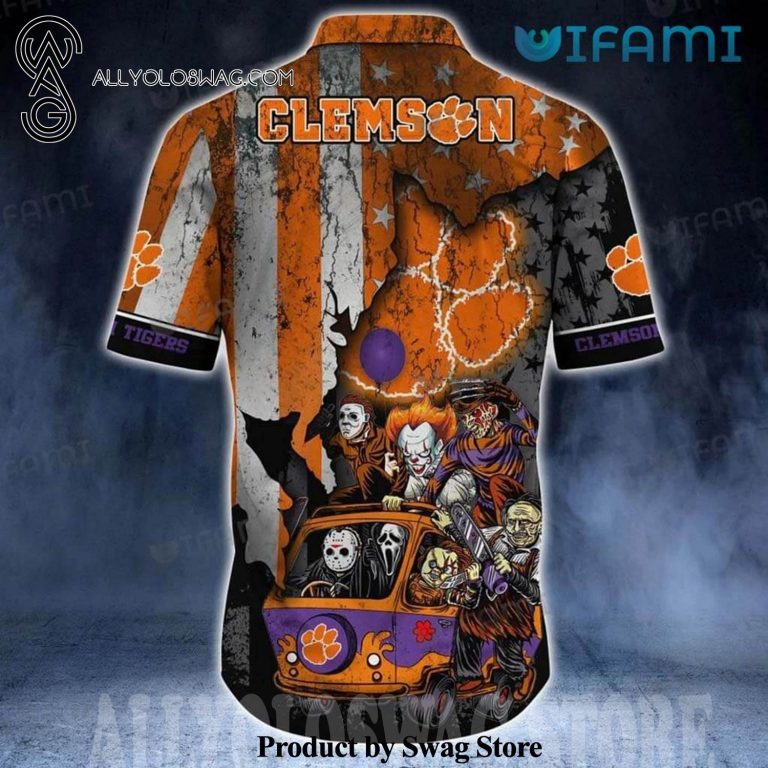 [Top-selling] Clemson Tigers Horror Movie Clemson Gift Hawaiian Shirt was hand-tailored in the early days of fashion. This might happen in the comfort of one’s own home or at a custom tailor’s business. These stores immediately sprang up all across the islands, especially in plantation towns and Honolulu. Newly accessible fabrics from throughout the world were sold at dry goods stores, including printed silk from Japan, raw silk, batik, and rayon from the United States mainland, and cotton cloth for kimonos and yukatas.Hawaiian history had long been shaped by Asian immigrants, and apparel designs reflected this. Short- and long-sleeved shirts, as well as women’s skirts, were created using pre-printed textiles from China and Japan and were based on Asian clothing styles. These bright blouses and dresses were the forerunners of today’s Aloha attire. On the islands, we say “ono” to describe something that is pleasantly cool.