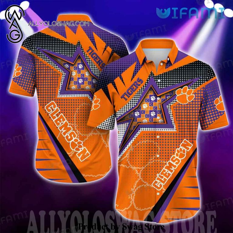 [Top-selling] Clemson Tigers Speckled Dot Clemson Gift Hawaiian Shirt was hand-tailored in the early days of fashion. This might happen in the comfort of one’s own home or at a custom tailor’s business. These stores immediately sprang up all across the islands, especially in plantation towns and Honolulu. Newly accessible fabrics from throughout the world were sold at dry goods stores, including printed silk from Japan, raw silk, batik, and rayon from the United States mainland, and cotton cloth for kimonos and yukatas.Hawaiian history had long been shaped by Asian immigrants, and apparel designs reflected this. Short- and long-sleeved shirts, as well as women’s skirts, were created using pre-printed textiles from China and Japan and were based on Asian clothing styles. These bright blouses and dresses were the forerunners of today’s Aloha attire. On the islands, we say “ono” to describe something that is pleasantly cool.
