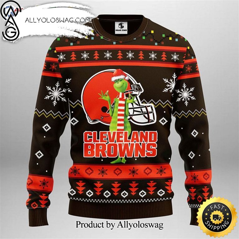 NOTE: [Top-selling] Cleveland Browns Grinch Show Your Team Spirit Knitting Pattern 3D Print Ugly Sweater