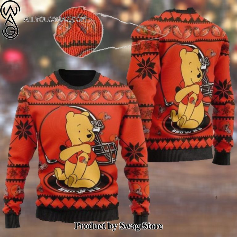 [Top-selling] Cleveland Browns NFL American Football Team Logo Cute Winnie The Pooh Bear 3D Ugly Christmas Sweater Shirt For Men And Women On Xmas Days