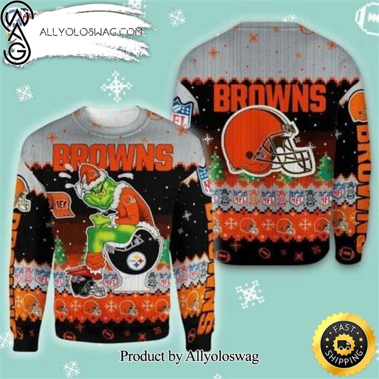 NOTE: [Top-selling] Cleveland Browns The Grinch NFL Ugly Christmas Wool Knitted Sweater