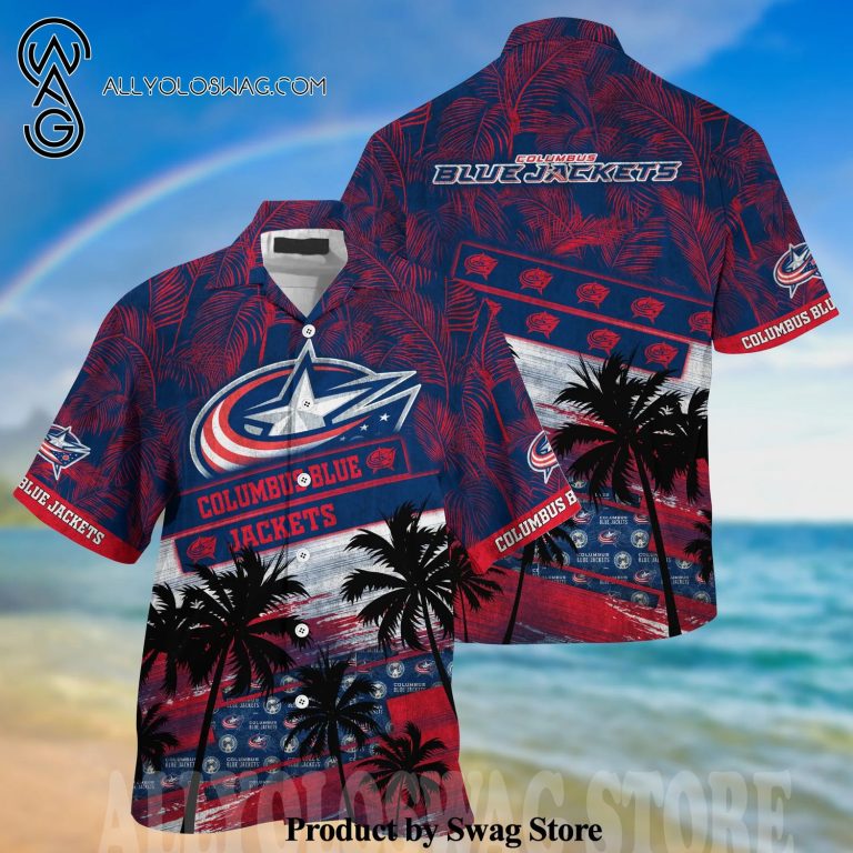Some details about our product [Top-selling] Columbus Blue Jackets NHL Palm Tree Pattern Full Print Classic Hawaiian Shirt