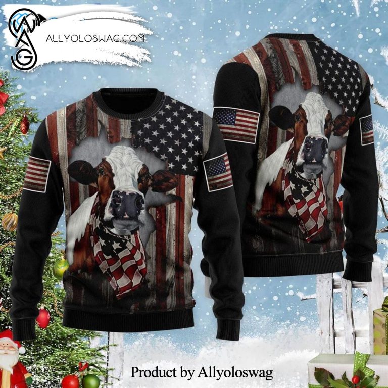 8. After winter, store sweaters – [Top-selling] Cow American Flag Patriotic Pattern Ugly Christmas Sweater
