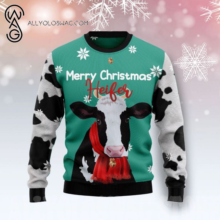 NOTE: [Top-selling] Cow Merry Christmas Heifer Knitting Pattern Ugly Christmas Sweater
